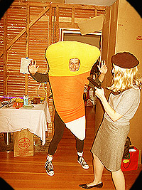 Sacks full of cash, gun wielding, and holdin' up Candy Corn. All in a day's work.