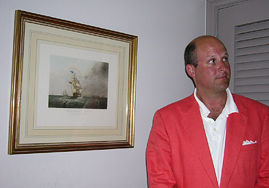 Dr. Kiethy Wood with a rare etching, (from his own collection) on loan to the mens' room at an undisclosed resort on the Big Island of Hawaii.