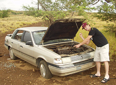 Dr. Simon Kamarra checks the rust in the oil of this abandoned Topaz