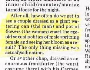 Flower Pot, Watering Can was well received in 1999 at the HCA Mystery Ball. The costumes made the Marin Independant Journal's lifestyle section the following Tuesday.