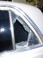 "Here you can see where the idiots broke the rear quarter window with a pry bar. They also dented the chrome on top of the door sill. If they had walked around the other side of the car, they might have noticed the rope activated side window, and simply pushed the window down into the door. But I guess that would require intuition and deductive reasoning skills, which our stereo boosting buddies didn't bother taking the time to apply." hardtuned.com team spokesman Jeff said just moments after noticing the damage. |