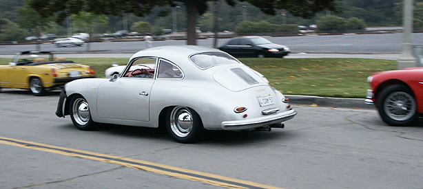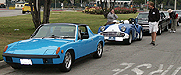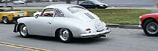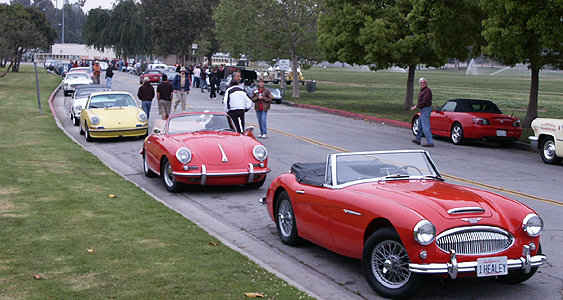 The machinery lined up at the the Rosebowl was impressive. On this page, 914 and a TR3 with a D-Type style fin covered in blue "racers"-tape, Alfa Giulia SS, Early 911, Aston Martin DB6, Healey and 356 Cab, and a real 4-cam 356 Carrera.......