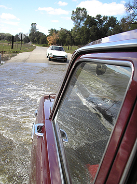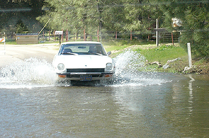 The hardtuned.com crew took another automotive leap of faith and purchased a 1973 Alfa Romeo Berlina on the Saturday before the Iron Bottom. After a quick pre-flight check, we grabbed some tools and hit the road. The official route left from the Rose Bowl in Pasadena, but a couple of us from Northern California started from San Francisco, and made our own charge down to Central California to meet the event on the first day. Thanks to relentless rain, the theme of the year was "water crossing." Hats off to Ed Pasini and Jack Brown, Disorganizers of the event.