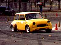 | Chris's Mini - 1980 Mini with Fortech flares and a whole bunch of interesting mods - including coil springs replacing the rubber cone suspension, big motor, and that great yellow/white primer... | ![]() |