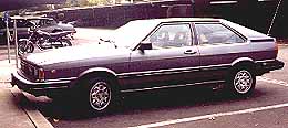 | 1982 Audi Coupe. Bought from father of some big rock bands drummer. (will tell ya when I remember who it was). Car had a nasty habit of wanting to 4 wheel steer during tight turns... scary! Sold to 2 crazy Israelis in San Jose. | ![]() |