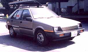| 1982 Mazda RX-7. Black with permanent tree sap on hood. Lost driveshaft on the freeway on the way to Jeff's house. That was scarry... Rotary power is very interesting! Starter did not always want to work. Gawd awful red interior. | ![]() |
