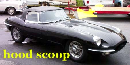 Clem enjoys the challenge of devising new hood scoops for his V8 Jaguars. Clem admitted that this one only runs on seven or five cylinders most of the time.