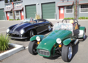 Pseudo period correct gauges, nice Nardi wheel, correct badging, 1700cc, dual Solex carbs, nice gearbox - pictured here with Caterham 7.