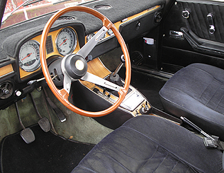 Look closely - the wood isn't perfect on the console, the wiper toggle switch (on the left) is only about half as long as it should be, there's a dash mat covering some cracks and there's also a crack in the rim of the steering wheel. The clock is right twice a day.