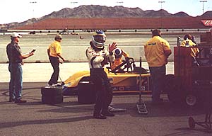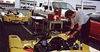 Eric Purcell and Jeff Glenn discuss the car while Fiorenzo
