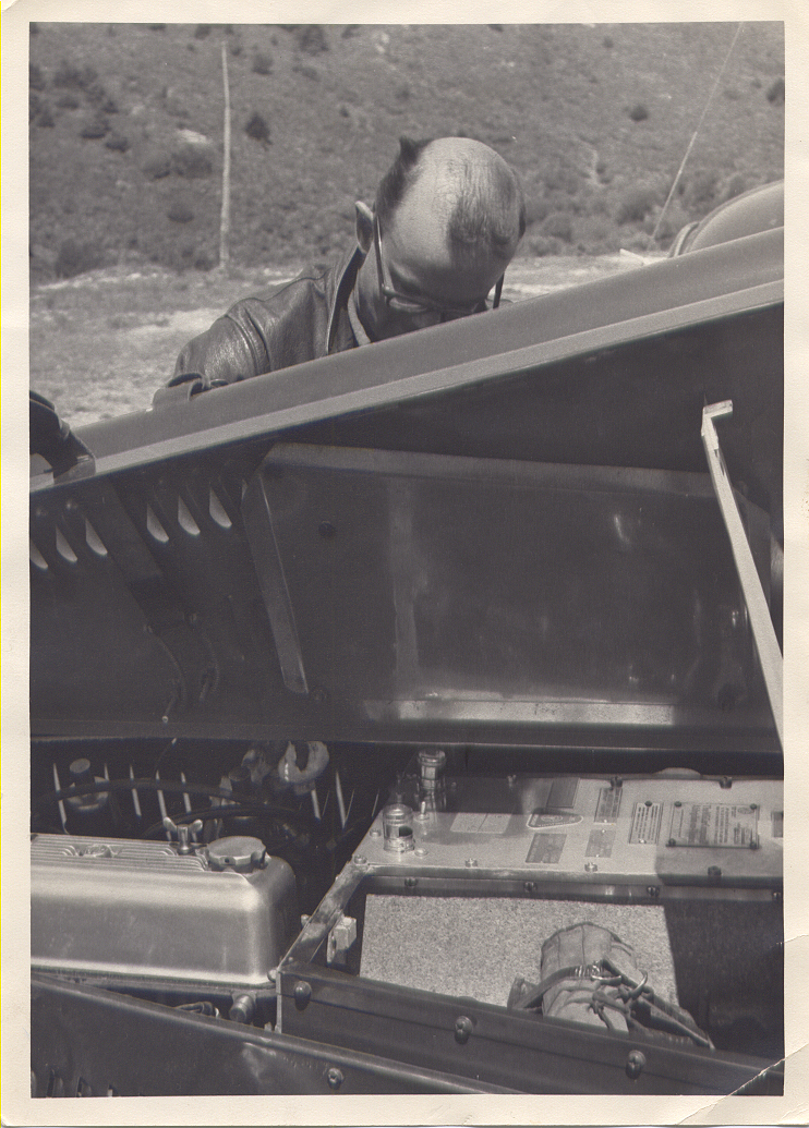 "Jack" Vander Male under the Bonnet. Note the louvered top panels, leather straps, and the dash plaques.