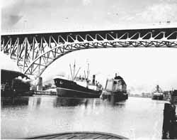 In 1915 the Detroit-Superior Bridge, (below) now known as the Veterans Memorial Bridge, was started. There was a need for a bridge that vessels could pass underneath, without opening and closing the bridge. The bridge opened in 1918 and was the largest double-decked concrete bridge in the world. Streetcars traveled across the bridge on the second deck. The bridge is now on the Register of Historic Places.
