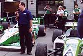 ![]() Jeremy Dale explains the Barber Dodge car next to an Indy Lights car and a FedEx Champ car. |