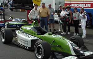 | Friday: I decided to add front wing to the car in order to gain more front grip for the practice session. It turned out that this was a little too much, as it was difficult to feel "the edge" of adhesion. Everyone went slower in this session, but my times increased more than the track conditions warranted. Friday's second session was the first qualifying of the weekend. I dropped the front wing settings lower from where I had them in the morning session. On the second lap with the tires still cold while coming through the Keyhole turn, I got to the throttle an instant too soon and ended up spinning into the grass. I came into the pits to clear the radiators, and then got back on track to qualify. The car felt better with less front wing, and I went over two seconds faster. The track conditions were better, and on average the field went roughly one second faster. I was asked to pull into the pit lane a lap early at the end of the first qualifying session so that my car could be cleaned for a television spot comparing the Barber Dodge car to an Indy Lights car to a FedEx Champ car. Look for that footage with the ESPN2 coverage from Mid - Ohio on August 31st at 6:30pm Eastern. In looking at the data, I was as quick and sometimes faster through several corners than the fastest lap times, but I was getting killed timewise on a couple of key corners and the straights. I had run 25th fastest in both sessions. |